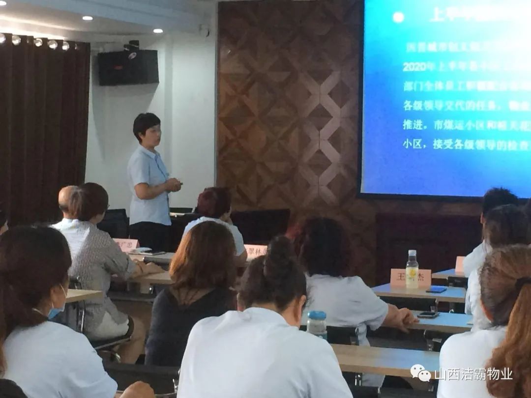 會上,公司保潔部經(jīng)理魏永梅、工程部經(jīng)理張翠林、山西百潔物業(yè)服務有限公司經(jīng)理閆秋麗、山西潔霸物業(yè)管理有限公司經(jīng)理李廣忠、晉城市合眾力勞務派遣有限公司經(jīng)理成濤、富士康項目部經(jīng)理王敏杰等分別就2020年上半年的經(jīng)營指標完成情況作了詳細的匯報,并對比目標找出了差距和根本原因,提出了下半年的經(jīng)營目標及保障年度目標實現(xiàn)的措施。
