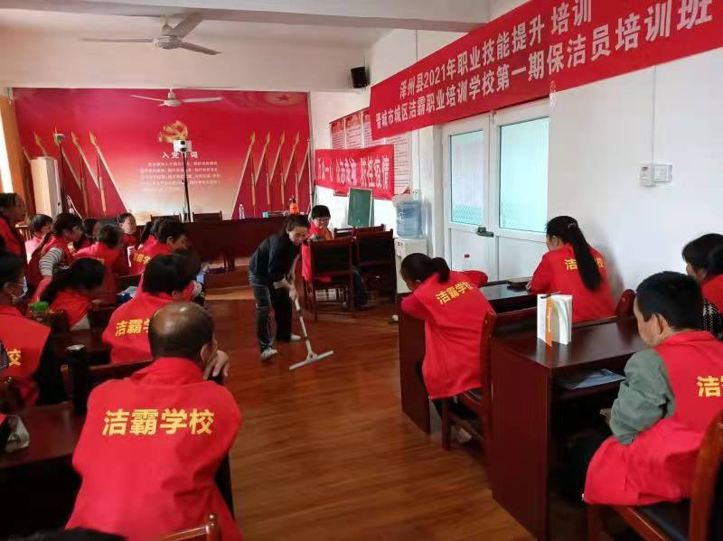 日前,由潔霸培訓(xùn)學(xué)校承辦的澤州縣人社局2021年全民技能提升培訓(xùn)第一期保潔員培訓(xùn)班在犁川鎮(zhèn)犁川村村委正式開(kāi)班。