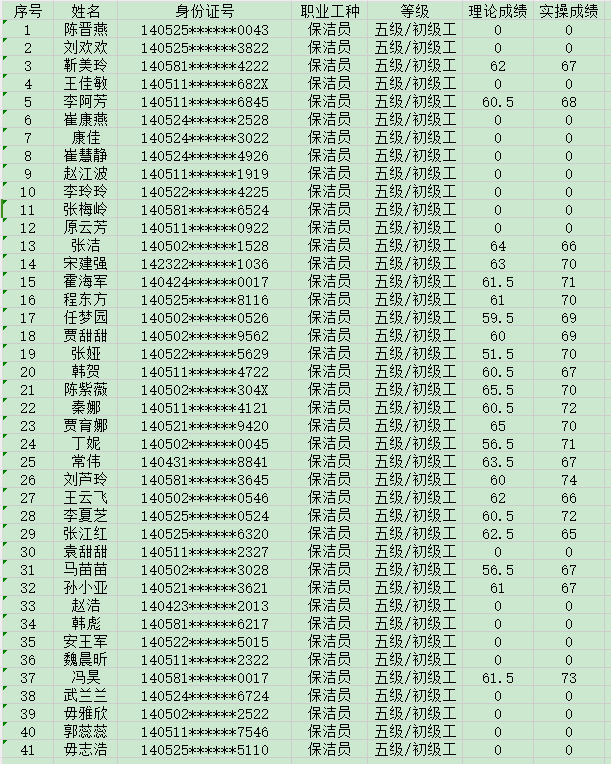 晉城市潔霸清潔服務股份有限公司職業(yè)技能等級認定中心現(xiàn)將2024年8月4日認定人員成績公示如下: